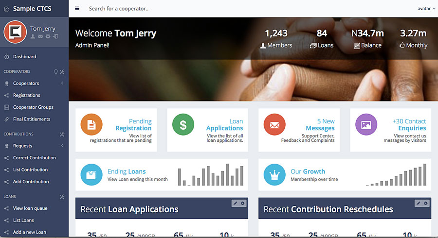 Every member of your Cooperative Society will have individual accounts where they will be able to apply for loans, communicate with Admin seamlessly, manage contributions etc.Sms queries and alerts.